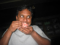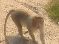 Mahabalipuram is a city located on the Bay of Bengal. It took us nearly 3 ½ hours by car because of terrible roads and tough traffic. We took a different route home and were back in only 2 hours. It is a recommended visit because of Hindu temples carved from granite. These temples are over 1600 years old and each were created out of single blocks of stone. Some of the carvings were very intricate, but only one is completed because a series of wars began while they were being created. There were an unbelievable number of beggars in this small town. Many would follow me around and call out or just follow me with an open hand. Some are very small children who have been trained what to say and how to ask. Philip and Pratap walk a little faster than me, but I had to keep moving in step with them to get away and prevent them from blocking me. There were also people trying to see trinkets, toys and keepsakes. I was identified as a target by a number of these individuals and practically chased around the park. Philip did finally purchase a small drum from a man. It is hand-crafted from camel leather and mango wood and cost us about $3. Before bargaining, he wanted $20 for it. It helps a lot that Philip speaks most of the languages spoken here and can tell people (politely) to bug off. When we got to the top of the temples, Pratap warned me to watch out for pick-pockets. Little did I know that he was referring to the 20 or so MONKEYS that were scurrying about the park. Apparently, in a very Aladdin-style way they have been trained to take wallets and bags from people. More often, though, they just take the food from your hand. Only one got a little too close for comfort for me. The rest roamed the ground minding their own business. I have never seen monkeys in the wild like that—only in zoos. It was quite an experience. We met a lot of family member’s today. I think by our reception in 2 days we will have met all 90+ of the people attending. Most of the people we’ve met are family members, but some are distant relatives all anxious to see Philip as it has been 4 years since his last visit and to meet me, his wife. In the evening we met Philip’s mom’s youngest sister, Elsie. She has 2 grown children who are 21 and 24. She lives in Kerala and they came by train to attend the reception. They are staying with Philip’s aunt, Mary. They shared many stories (some in English) about what a mischievous child Philip used to be. One rather humorous story involved Philip convincing a cousin to shave one of his eyebrows.