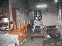 We returned home to discover that severe damage had been done to the house when a fridge caught fire in the dining room while we were gone. The dining room and living room spaces were really damaged from fire, smoke and water. The fire department had to break through a door to get into the house. Several friends, relatives and neighbors had come to assess the damage, but no clean up occurred. The walls and ceilings are totally black (usually white) and the white marble floors which are throughout the house are either wet or covered in soot. The 2 of us were immediately ready to dive in and begin clean up—especially where we saw standing water upwards of 3 inches in Pratap and Philip’s parents’ bedrooms. We were really discouraged from starting the clean-up process as Philip’s dad was already on the phone contacting people to come to clean the floors and ceilings. We began making comparisons about how so much of this we’d do ourselves in America, but here you wait to have someone else come to take care of it. India is still very much a classist society. The servants take care of laundry, most cooking, and cleaning of the home. When I discovered that most of our clothes had either been ruined by the smoke damage or needed to be rewashed to see if we could salvage them, I offered to do the laundry myself. Philip said that this would really offend the servant if I assisted. Also, he asked if I really wanted to stand on the terrace and rub our soaped up clothes against a rock to get them clean. I forgot that I can’t just shove them into a machine and push ‘start’. Everything is also hung to dry. I initially found myself a bit self-conscious about having someone wash my underwear and then hang it outside on the line to dry; now, of course, it has had to happen twice! So, today we are spending the day assisting a gentleman who is making less than $10 for the whole day of cleaning the floors. Remarkably, most of the damage is superficial and there is not a huge loss of items with sentimental value. The dishes have to all be cleaned as they have a layer of soot. We have had to eat the last 3 meals in the guest bedroom with most of us seated on the bed because the damage has left us nowhere to sit. The bedroom where we’ve been sleeping suffered no damage other than soot all over the floors and we were required to really wipe down the furniture as it also had some soot remaining. I did get a little case of cabin fever today. I was ready to go out and about to see or do something. We had a few visitors…cousins, aunts, nieces and nephews. Most of the day was clean up and relax. Philip’s mom is looking forward to sharing the t.v. show ‘Indian Idol’ with me tonight. The songs are sung in Hindi. There is a young boy who is the superstar on the show and reminds her of Rian because he didn’t talk until he was 9. Philip’s mom thinks Rian should move to India and learn Hindi so that he can be the next ‘Indian Idol’ and win a big flat (apartment) in Bangalore.Because of the damage from the fire, our second reception has been moved to the church auditorium. Many phone calls were made today to let people know of the change.